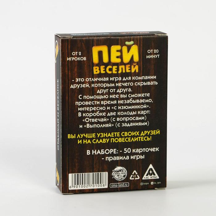 Купить игра для компании "пей веселей" 50 карт от 180 руб. с доставкой до пункта выдачи в Тобольске. Интернет магазин ДекаМаркет. Оплата при получении.